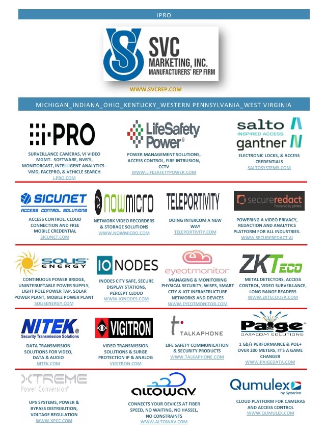 We provide integrated proactive security system solutions for today’s growing security concerns and maintain localized territories for the best possible support and expedient services to our Manufacturers, local Dealers & Distributors, National Account Offices, A&E Firms and local End Users